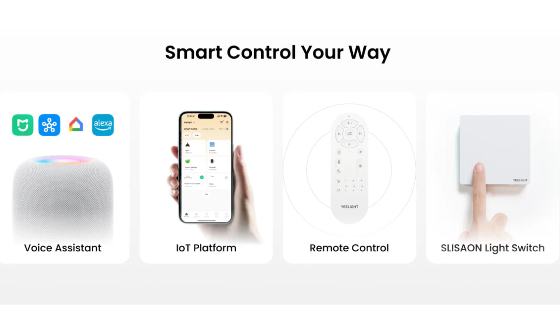 Trái tim của trải nghiệm thông minh với Yeelight Turbo YLXDD-0269 là khả năng điều khiển linh hoạt qua nhiều nền tảng: