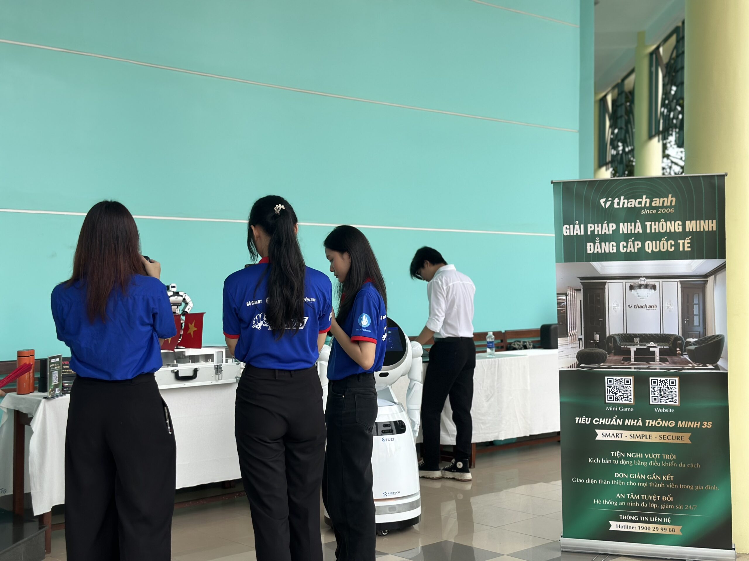 Để sự kiện thêm phần sinh động và minh họa rõ nét hơn về ứng dụng của tự động hóa, Thạch Anh ITT đã hợp tác cùng ART5 mang đến Robot dịch vụ thông minh UBTech CRUZR. Khả năng tương tác thân thiện, di chuyển linh hoạt và cung cấp thông tin hữu ích của Cruzr đã tạo nên sự bất ngờ thú vị, giúp các bạn học sinh có cái nhìn cận cảnh hơn về vai trò của robot và trí tuệ nhân tạo (AI) trong cuộc sống hàng ngày.