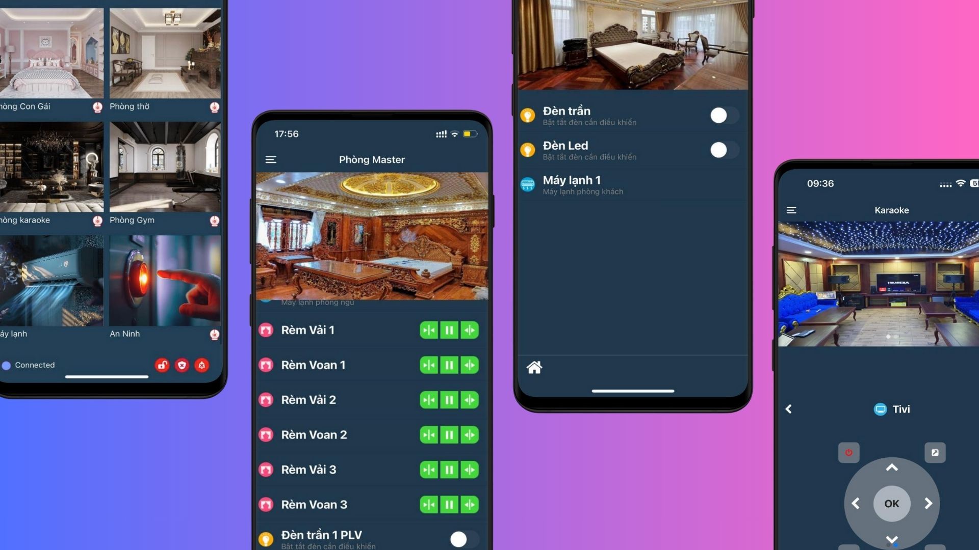 - Điều khiển tập trung và từ xa: Toàn bộ ngôi nhà trong tầm tay bạn. Chỉ cần chạm vào ứng dụng trên điện thoại hoặc ra lệnh bằng giọng nói, bạn có thể kiểm soát mọi thiết bị, dù đang ở bất kỳ đâu.