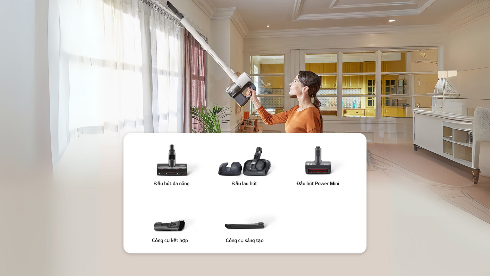 - Đầu hút Power Drive™ Mop: Cho phép vừa hút bụi vừa lau sàn ướt, tiết kiệm thời gian dọn dẹp. Đầu lau xoay kép giúp làm sạch hiệu quả hơn.